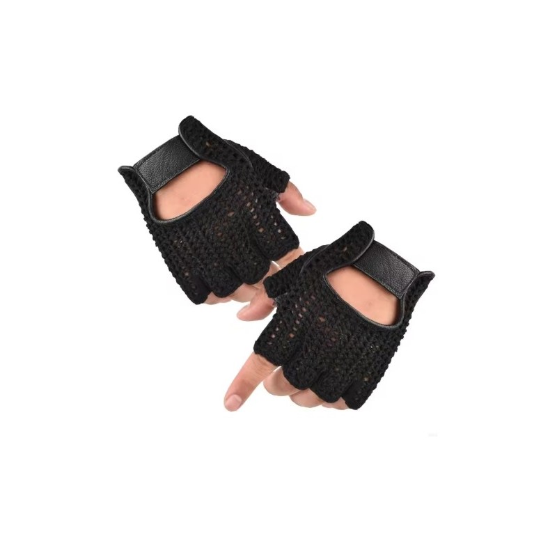 GUANTI VINTAGE ANNI '50 '60 COTONE 100% TRAFORATI UNISEX ADATTI PER LA GUIDA DI MOTO E AUTO IN COLORE NERO