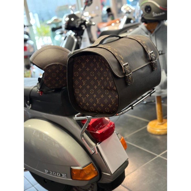 Borsa Classic Vintage in pelle con chiusura e fissaggio a cinghie per il montaggio su portapacchi posteriore.
