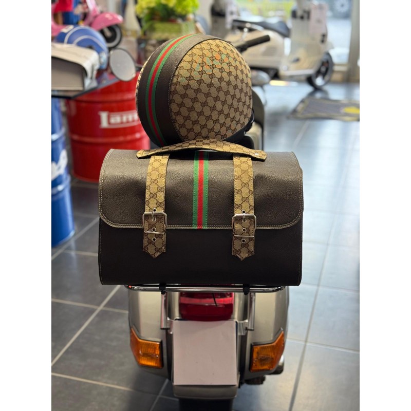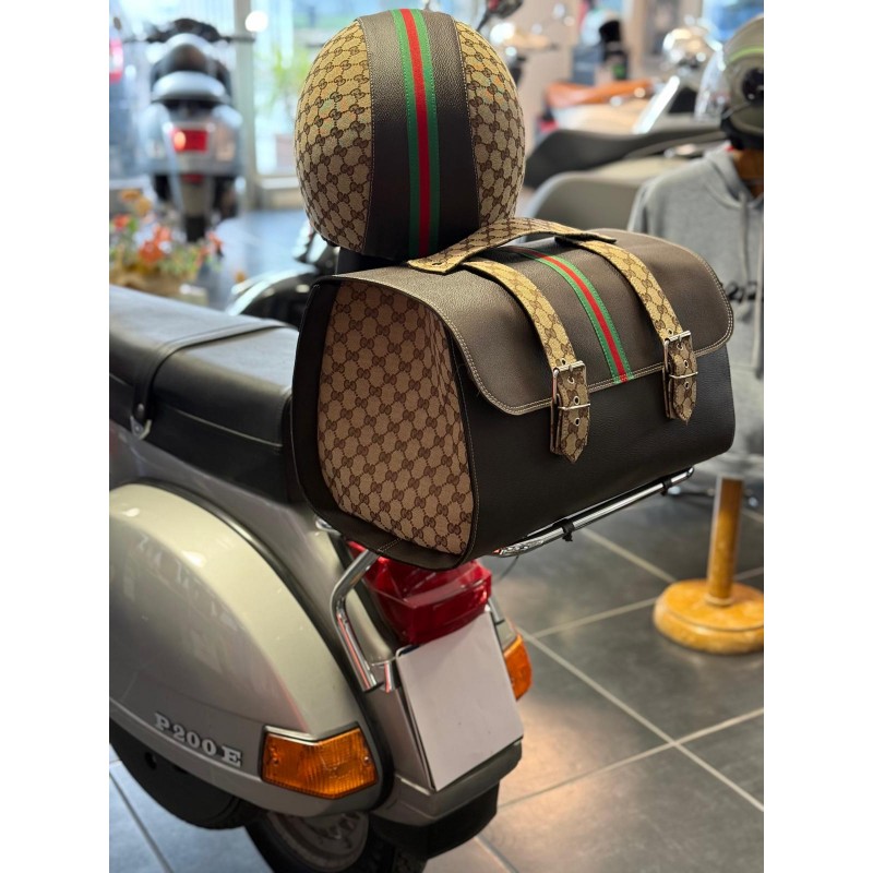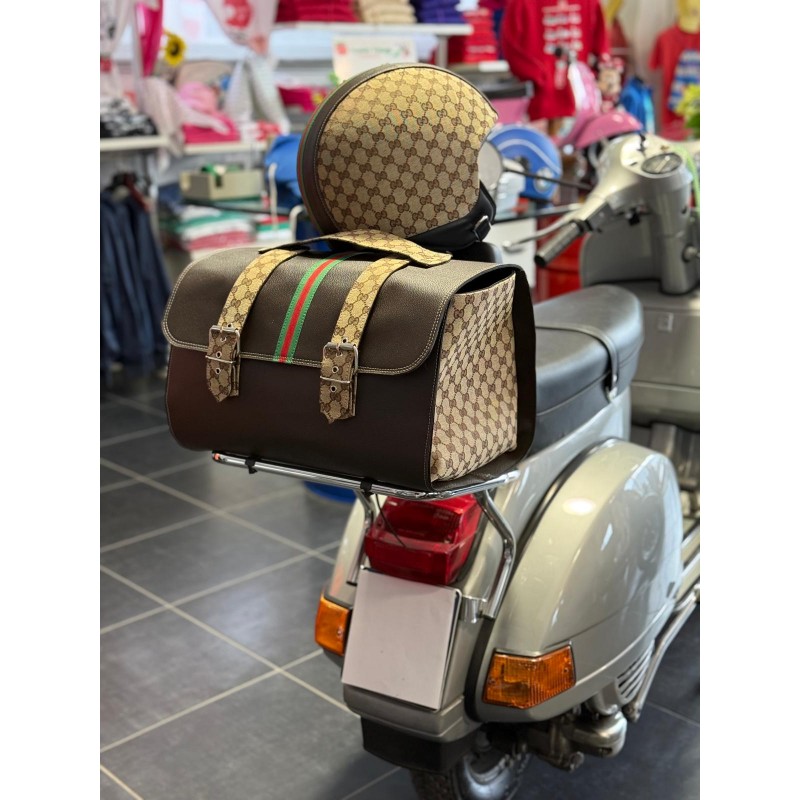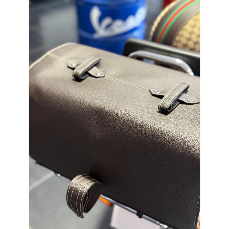 Borsa Classic Vintage in pelle con chiusura e fissaggio a cinghie per il montaggio su portapacchi posteriore.
