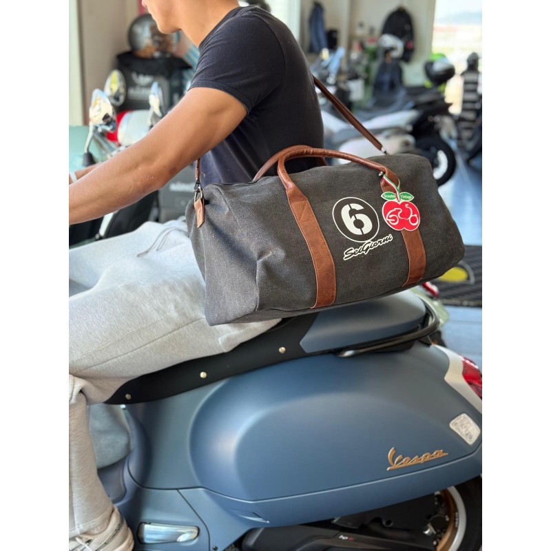 BORSA DA VIAGGIO CON TRACOLLA CON LOGO "6 GIORNI" BY SCOOTER VINTAGE ALL'INTERNO DISPONE DI UNA TASCA CON ZIP E UNA TASCA SEMPLICE FODERATA E LAVABILE